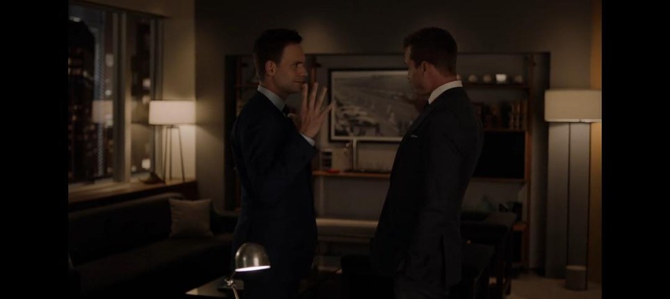harvey和Mike反转面试的那一刻,一切并肩齐嬉笑怒骂、行走同江洋大盗、办案如叱咤风云的画片如同被打散的胶卷,一瞬间被铺展开,激情的冒险、盘旋的角斗、惊险的胜利...种种发着光的时刻,借着熟悉的玩世不恭的笑容在Harvey和Mike的脸上回归。