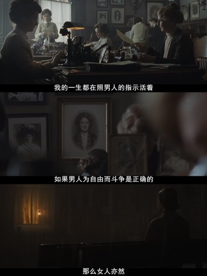 20世纪初的英国,女性活得像附属品: 洗衣厂女工7岁就做工,双手被化学剂腐蚀溃烂,工时比男性长1/3,工资却少整整6先令💰; 遭遇职场性骚扰只能忍气吞声,连自己的孩子都没有抚养权,丈夫一句话就能送养; 和平请愿50年,换来的只有嘲笑、殴打和无视 同工不同酬、缺乏政治权利、人身依附男性… 电影是关于女主莫德的觉醒之路: 从一开始不敢发声的普通女工,到亲眼目睹女童工被欺负后挺身而出,再到顶着家庭破裂、社会孤立的压力加入抗争。 印象最深的两个片段: 她在听证会上颤抖着说“我只是想要另一种生活”,却被男性议员冷漠敷衍; 还有狱中绝食遭遇强制灌食,鼻管插入喉咙的痛苦画面。 “我们不想成为违法者,我们要成为立法者” 💥 当和平请愿无效,她们只能用砸橱窗、绝食抗议的激进方式,敲醒这个沉睡的男权社会。而艾米丽冲向国王赛马场的那一刻,慢镜头里飘扬的“Votes for Women”旗帜,成为了最悲壮的抗争符号。 电影最后一行字幕: 1928年,英国女性终于获得平等选举权——距离运动开始,已经过去了数十年。那些先驱甚至没能亲眼看到胜利。 现在的我们,能上学、能工作、能自主选择人生,不是理所当然。这部电影不是要制造性别对立,而是提醒每个女孩:永远不要低估自己的力量,也永远要珍惜前辈们用牺牲换来的权利。 女生必看!男生更该看!看完真的会更懂平等的重量✨ p6男人对女人开着玩笑,她的回怼好棒!