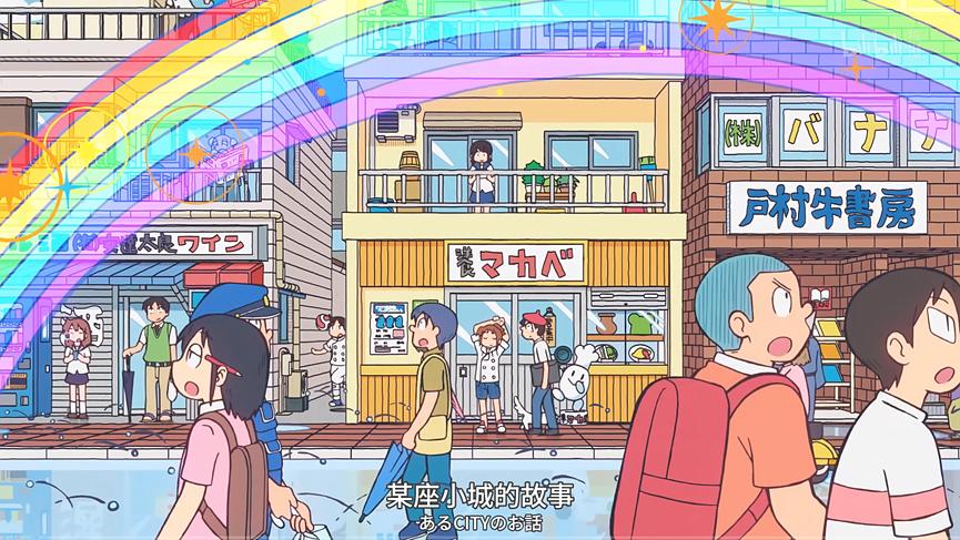 随后,画风一转,舒缓美好的小镇生活OP登场。不同于以往观众对“神作OP”的期待——靠风格化、高张数堆积的炸裂画面展现作品风格,《city》的OP显得有些“不合时宜”。但结合后续七个片段的故事就能明白,这是监督为调节观众情绪特意设计的:动画中的高潮往往只有15分钟,而二十分钟内包含七个片段,意味着观众要反复经历七次“起承转合”,大脑需不断处理动态影像、复杂剧情与丰富角色,很容易产生疲惫感。因此,监督特意降低OP/ED的“精彩程度”,用舒缓风格为观众提供放松间隔,足见其细心与在动画业界深耕多年的经验。
