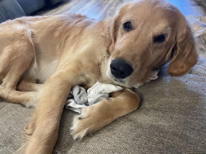 (狗狗的眼中创可贴被严重放大)