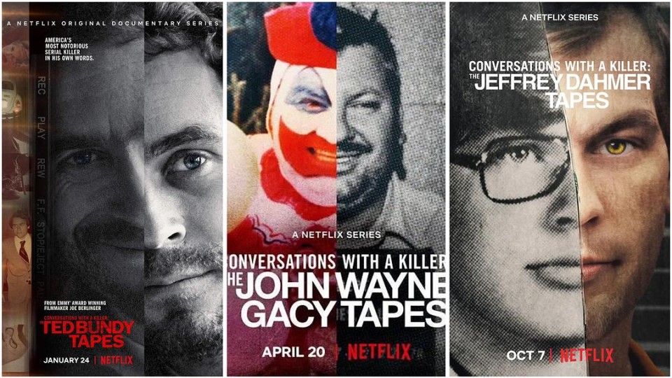 1. 首先《怪奇收割》这部电影的形式,对于爱看Netfilx连环杀手纪录片的影迷来说,不难看出,整部电影的形式,几乎和Netfilx的连环杀手纪录片《与杀手对话》(对话杀人魔)系列如出一辙,就连纪录片结尾的“以此纪念被xx杀害的xx名受害者”都复刻的让人感叹电影制造的用心。这个连环杀手纪录片目前有三部,分别讲了泰德邦迪,约翰·韦恩·盖西和杰弗瑞·达莫这三位。在电影后半段将近结尾的时候用来举例展示的连环杀手图片,正是他们三个的真人照片。 泰德·邦迪,是我一直都最欣赏的一个连环杀手,他被称为是美国最聪明的连环杀手,关于他的纪录片和改编电影甚至作为电影里的杀手原型也是数不胜数,如纪录片有《与杀手对话第一季:泰德邦迪录像带》《倾心于杀手第一季:泰德邦迪》等,电影《极端邪恶》甚至于电影版的汉尼拔原型也是他。 约翰·韦恩·盖西,因为每次犯案时都带着小丑面具,也被大家称为杀人小丑,近几年关于他的纪录片和影视改编也越来越多,像《与杀手对话第二季:约翰韦恩盖西》,《美国恐怖故事4》中也以他的形象出现过一个杀手,虽然戏份不多,但也算是一个彩蛋。以及近几年大火的怪物系列《怪物:杰弗瑞达莫的故事》中结尾的那个新杀手,就是约翰韦恩盖西。