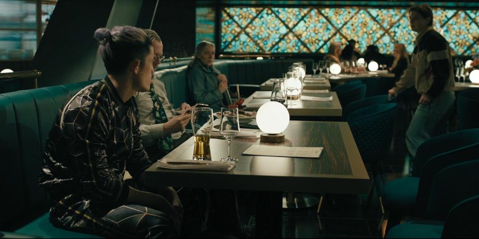 这一集比较有趣的细节是餐厅里慢马们的座位分布。刚开始,他们还聚在一起,但是由于口角,很快就分开了: